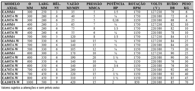 • Diâmetros do exaustor axial: de 30cm á 1m